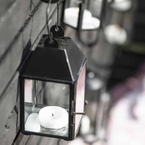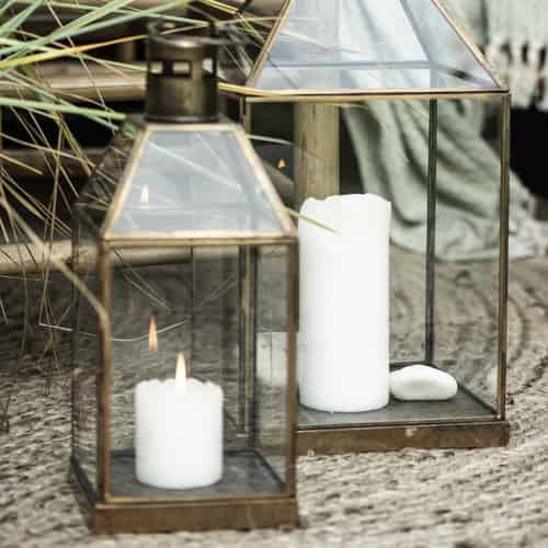 Ib Laursen lanterne til fyrfadslys med mønster foran høj sort, køb her i vores netbutik.