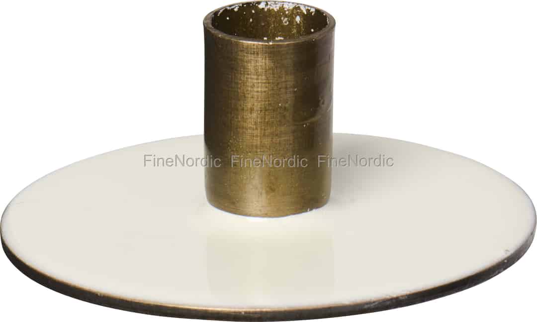 Oplev den stille charme ved denne smukt udformede lysestage fra Ib Laursen – et design, der hylder den enkle skønhed i en enkelt flamme. Designet forener en glat, blank emaljefod i 'butter cream' med de varme, dæmpede toner fra en holder i antik messing. Fodens mørke, let slidte kant tilføjer et strejf af rustik autenticitet, som om den har været en skattet del af dit hjem i mange år. Dette er mere end blot en stage; det er et lille ankerpunkt for at skabe stunder af ro og eftertanke, hvad enten det er på en tåget morgen eller en stille aften.