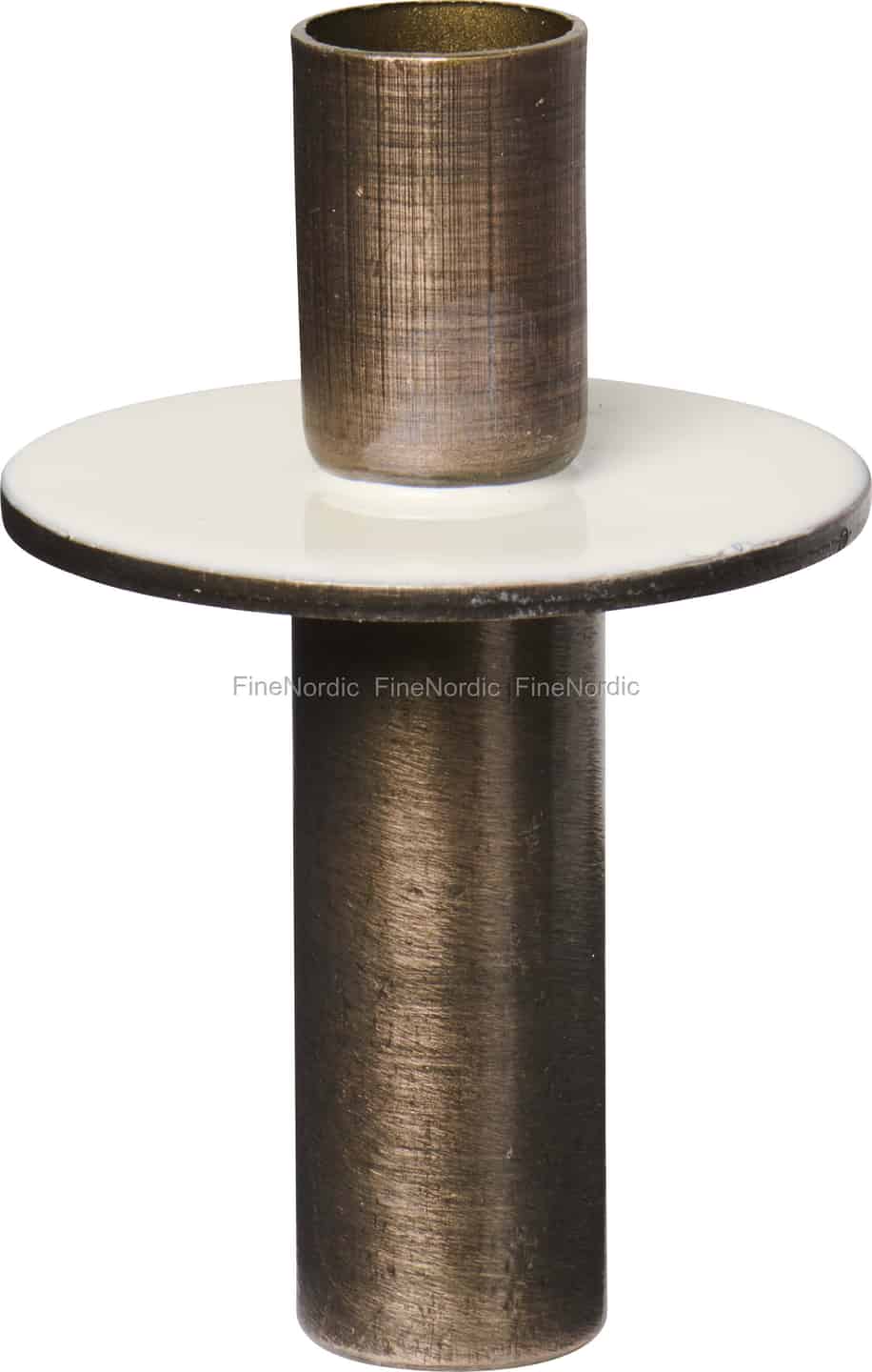 - Kontrasterende teksturer og toner: Det fyldige, børstede metal med bronzefinish passer smukt sammen med den glatte, blanke emaljeskive i butter cream, hvilket tilføjer et strejf af rustik elegance til din opstilling.
