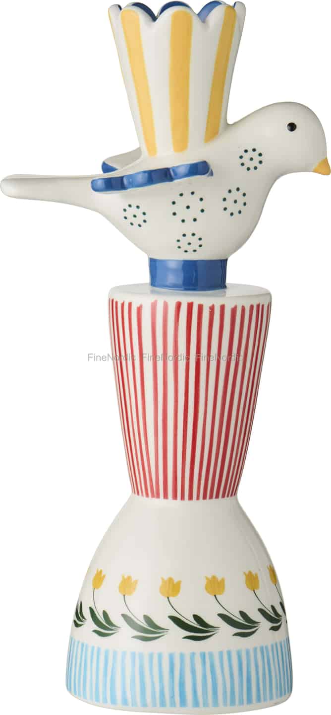 Byd et strejf af legesyg folkekunst indenfor i dit hjem med denne herlige lysestage fra Ib Laursen. Dens livlige, håndmalede detaljer og charmerende fuglemotiv skaber en øjeblikkelig følelse af glæde, klar til at kaste et varmt og indbydende skær i ethvert rum.