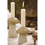 - Et finurligt, naturinspireret design: Formet som en charmerende skovsvamp tilføjer denne stage et strejf af legende karakter og organisk skønhed til enhver hylde, kaminhylde eller borddækning.