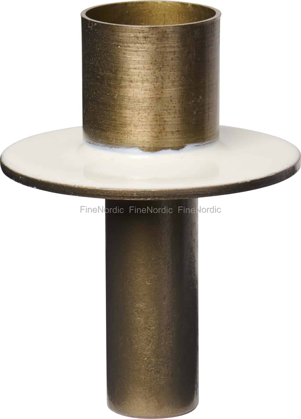 Der er en særlig magi i at finde skønhed i hverdagen. Ib Laursen fanger netop denne ånd med denne geniale lysestage, designet til at forvandle enhver glemt flaske til et fyrtårn af varme. Den robuste metalkonstruktion med en finish af tidløs, antik messing giver en rustik og jordnær fornemmelse. Den føles solid og ærlig – et stykke design, der fortæller en historie om enkelhed og omtanke. Kontrasten mellem metallet og den glatte, blanke smørcremefarvede emalje på drypbakken er en fryd for øjet, der blødgør dens karakter med et strejf af blid farve.
