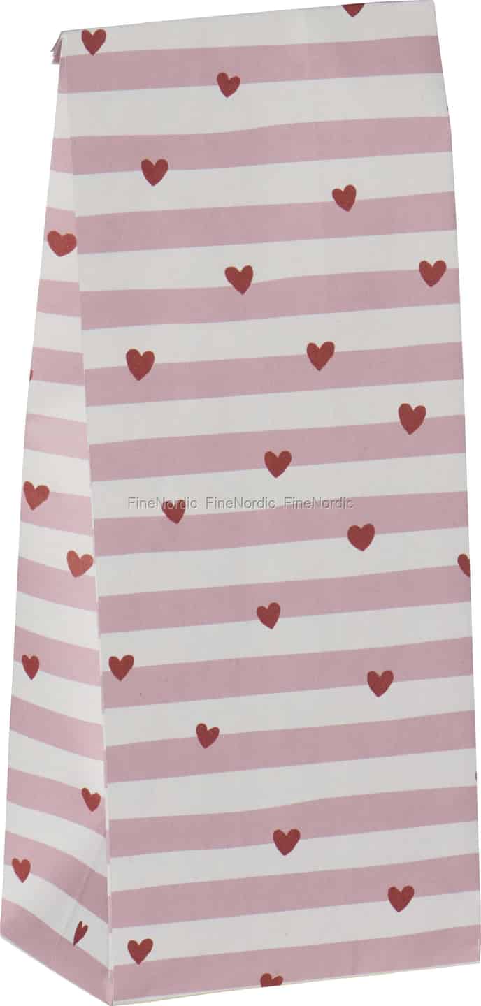 Ib Laursen Papirspose - Røde hjerter, lyserøde striber - Lille