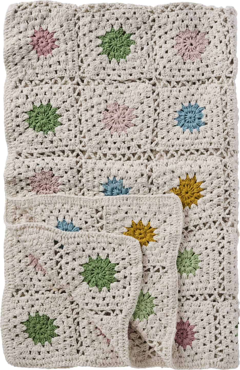 Ib Laursen Plaid - Hæklet - Creme - Flerfarvede blomster 130 x 170 cm