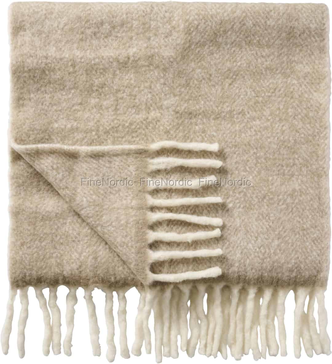 Ib Laursen Plaid - Sand - "Melange" - Råhvide frynser 130 x 170 cm