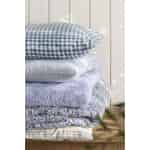 Ib Laursen pudebetræk Ebbe natur med mørkeblåt ternet mønster 50 x 50 cm, køb her hos FineNordic.