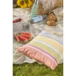 Lad det glade design fra dette Ib Laursen pudebetræk føre dig til en solrig skandinavisk sommer. Hver stribe fortæller en historie om enkle glæder: den bløde rosa fra en tidlig solopgang, den solgule farve fra engens smørblomster og den spæde grønne fra nye blade. Fremstillet i en vidunderligt taktil, vævet bomuld bringer det ikke kun farve, men også en følelse af autentisk, rustik charme ind i dit hjem. Det er den perfekte måde at forny din stue på med et strejf af varme og optimisme og skabe et indbydende sted, hvor du og dine kære kan samles.