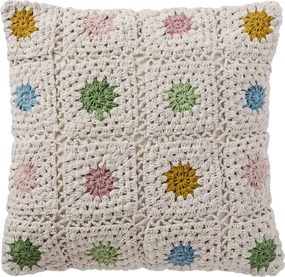 Ib Laursen Pudebetræk - Hæklet - Creme - Flerfarvede blomster, bagside cremefarvet kanvas 50 x 50 cm