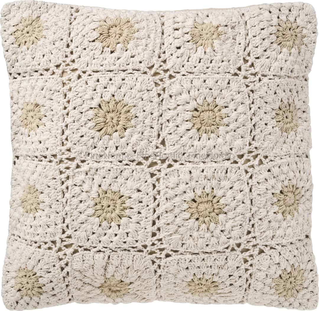 Genopdag skønheden i traditionelt håndværk med dette udsøgte pudebetræk fra Ib Laursen. Hver firkant er omhyggeligt hæklet af blødt, tykt bomuldsgarn og danner et tidløst blomstermønster, der fortæller historier om stille eftermiddage og kære arvestykker. Samspillet mellem creme og naturlige beigetoner skaber en beroligende visuel harmoni, mens det åbne mønster giver et glimt af det robuste kanvas nedenunder. Det er et design, der ikke blot pynter i et rum; det tilfører en følelse af historie og en blid, taktil komfort, der inviterer dig til at række ud og røre ved det.