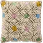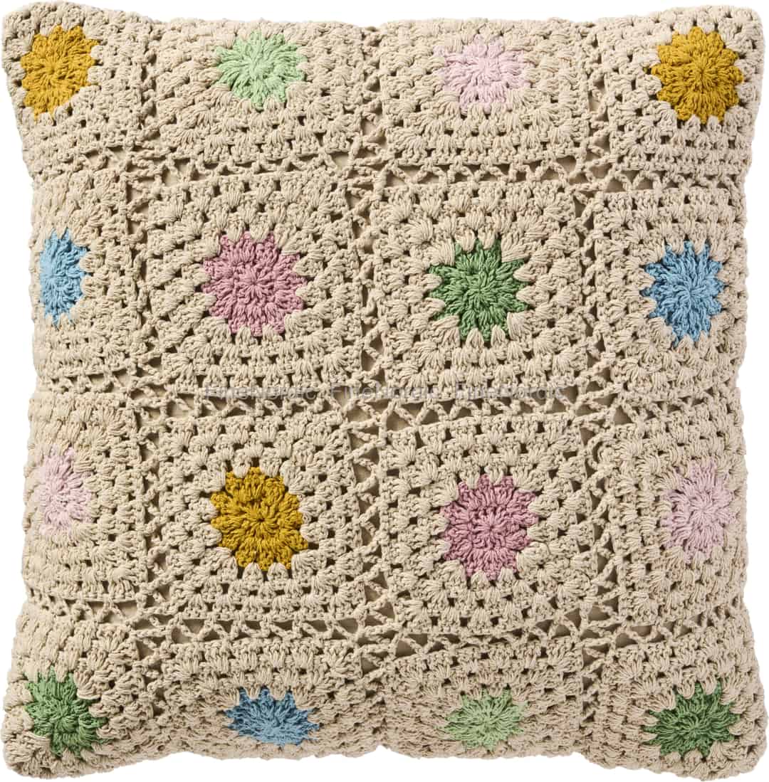 Ib Laursen Pudebetræk - Hæklet - Natur - Flerfarvede blomster, Bagside naturfarvet kanvas 50 x 50 cm