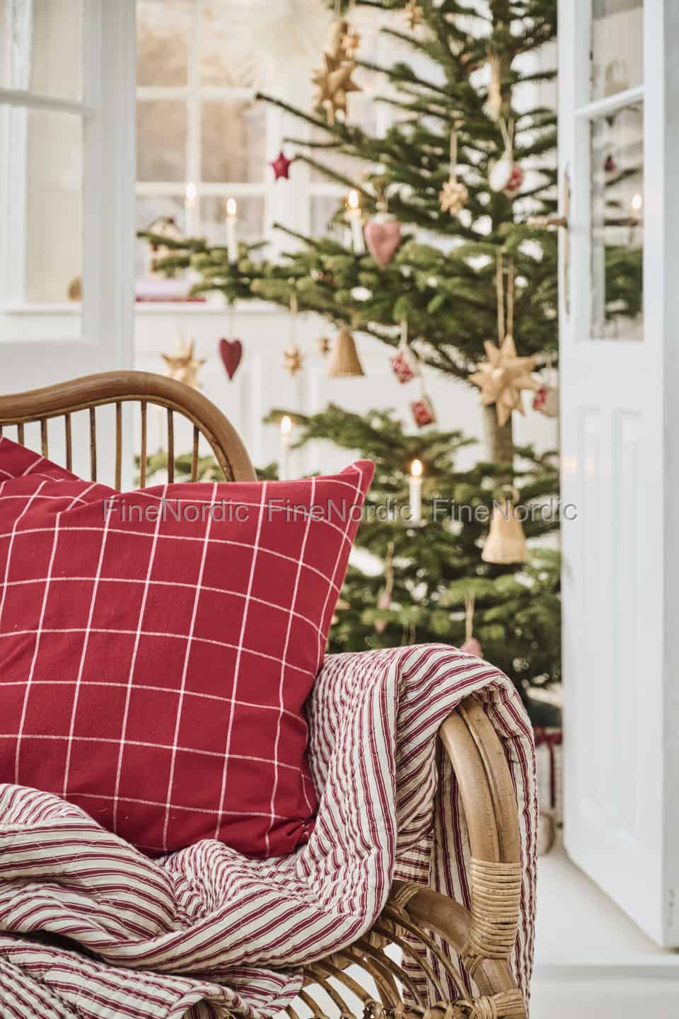 - Skab en indbydende og festlig atmosfære: Den dybe røde bomuld og det tidløse ternede mønster tilføjer øjeblikkeligt et lag af varme og julestemning, der får din sofa eller lænestol til at føles vidunderligt indbydende.