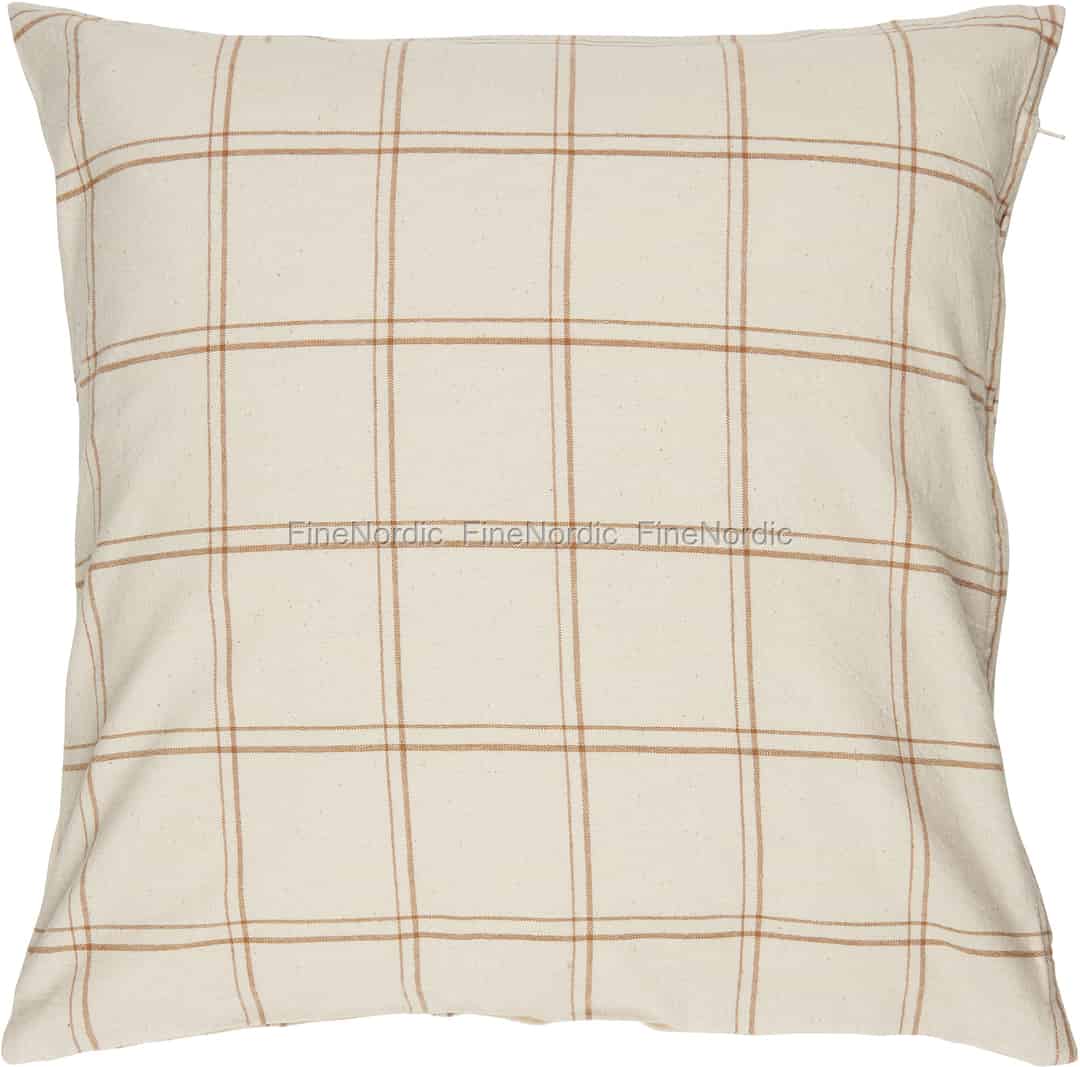 Ib Laursen pudebetræk Theodor natur med rustiktbrunt ternet mønster 50 x 50 cm, find det her på FineNordic.