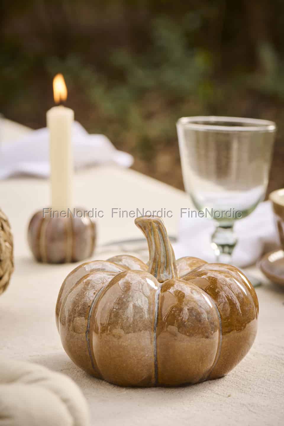 - En helt unik finish: Hvert græskar er afsluttet med en reaktiv glasur, som skaber fine variationer i de nistrede brune nuancer og sikrer, at din dekoration er fuldstændig enestående.