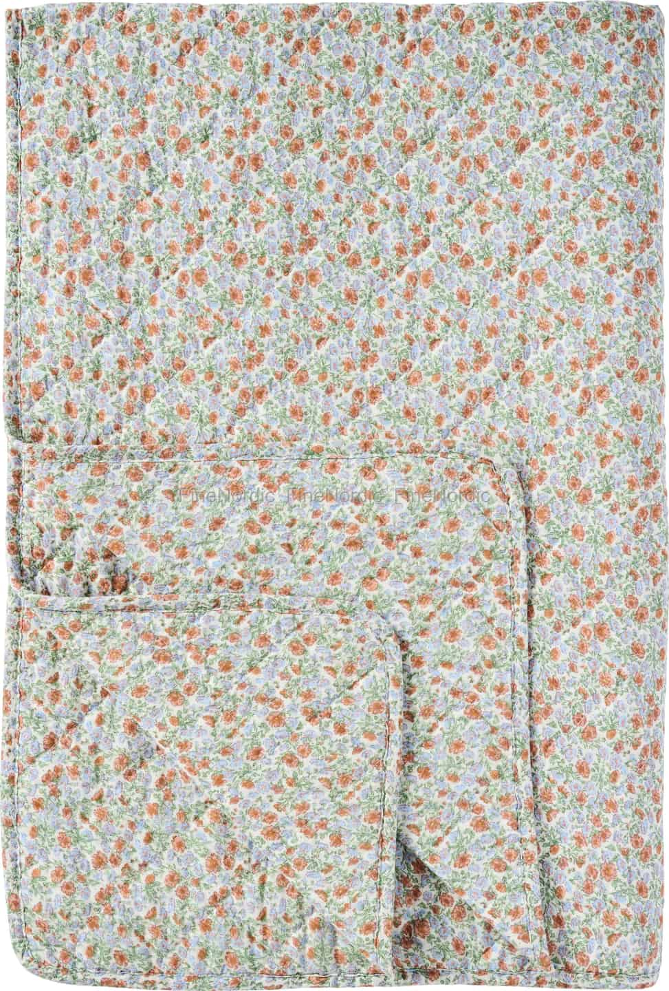 Ib Laursen Quilt - Lyseblå og rustfarvede blomster 130 x 180 cm
