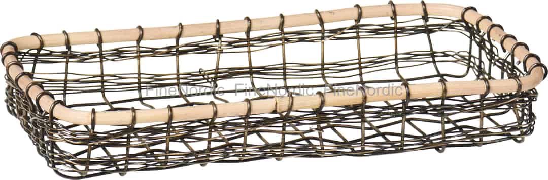 - En blanding af rustikke materialer: Fremstillet af et robust metalnet med en antik messingfinish, som står i kontrast til den glatte, naturlige bambuskant, tilbyder denne holder både holdbarhed og en varm, organisk æstetik.