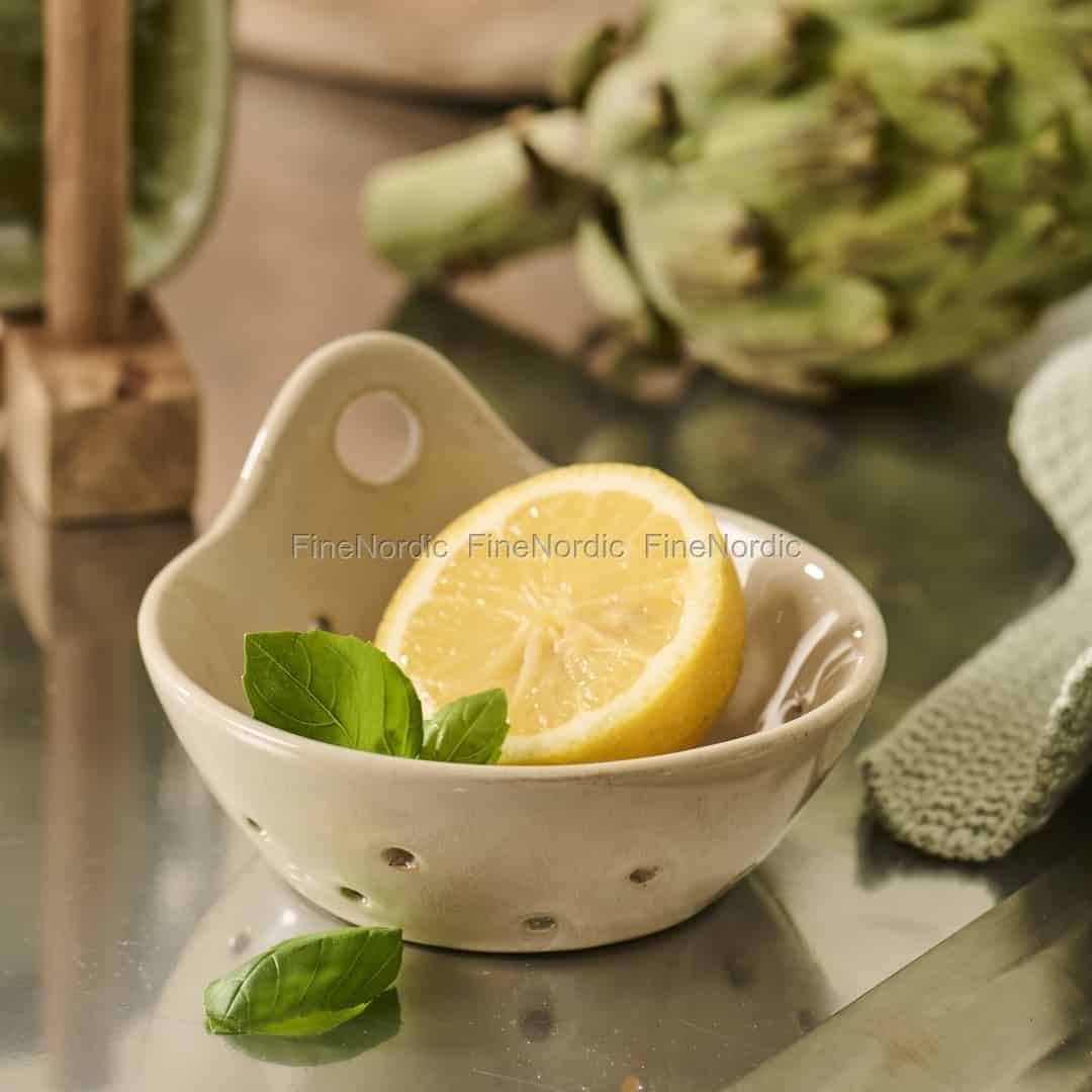 I et skandinavisk køkken besidder selv de mest praktiske genstande en stille skønhed. Denne mini-si i keramik fra Ib Laursen er et perfekt eksempel, designet til at bringe lidt ekstra glæde ind i dine daglige rutiner. Den cremede, spættede glasur føles vidunderlig i hænderne, og dens bløde kurver gør den simple handling at skylle friske råvarer til et betænksomt ritual. Det er et stykke, der taler om 'slow living' og en påskønnelse for veludført, funktionelt design.