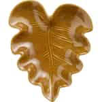 Denne smukke keramikskål fra Ib Laursen er en stille hyldest til naturens enkle former. Dens generøse bladform er afsluttet med en varm, sennepsbrun glasur, der gløder med et indbydende skær, som minder om det gyldne lys, der filtreres gennem en efterårsskov. De fint prægede årer tilføjer et lag af tekstur, hvilket gør den til et stykke, der føles lige så dejligt, som det ser ud. Det er en vidunderlig måde at bringe et strejf af naturen ind i dit fristed derhjemme og skabe en følelse af ro og nærvær.