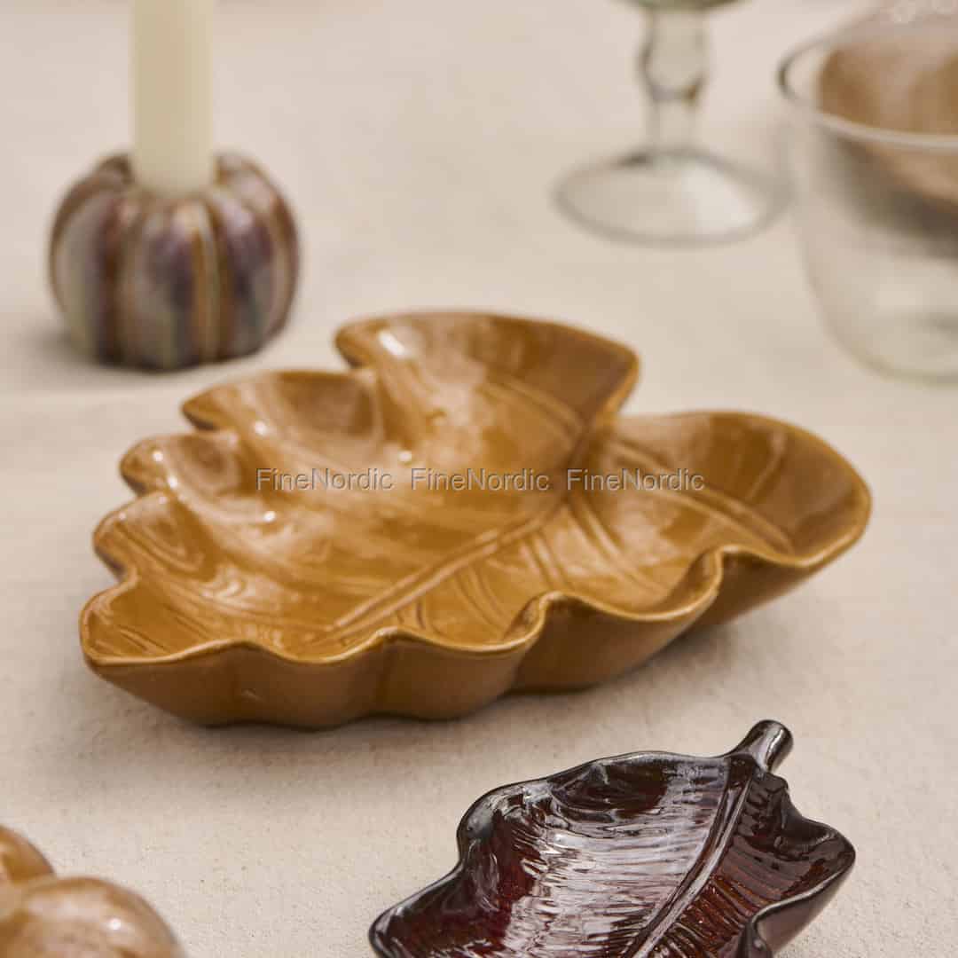Inviter skovturens stille charme ind i dit hjem. Denne smukke, bladformede skål fra Ib Laursen indfanger essensen af efteråret med sin organiske form og varme, indbydende glasur, klar til at omfavne dine yndlingslækkerier fra sæsonen.