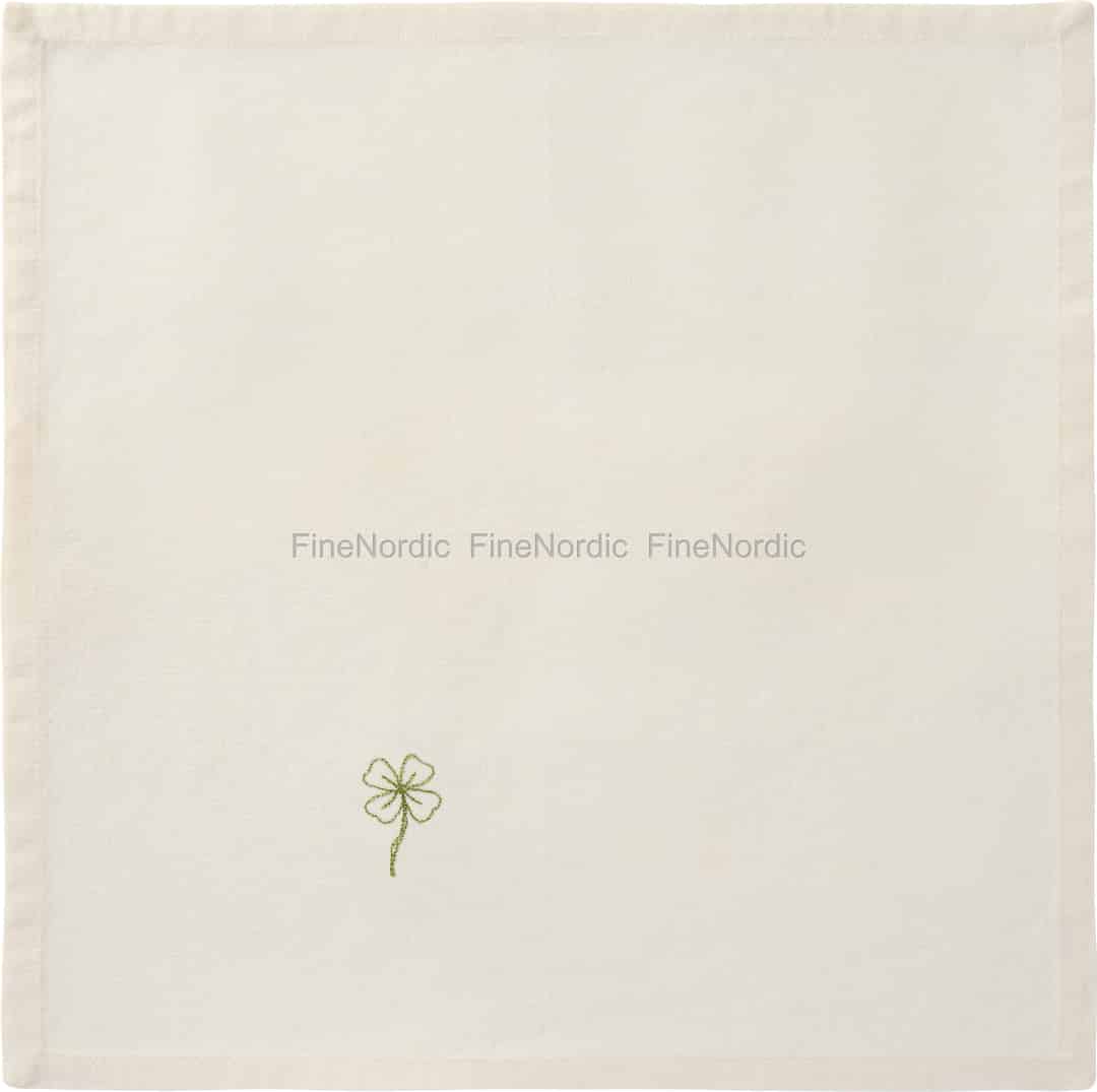 Fold en lille smule lykke ud ved dit næste måltid. Denne charmerende stofserviet fra Ib Laursen, i en varm smørcremefarve, er fremstillet af blød bomuld og prydet med en enkelt, fint broderet firkløver – et stille ønske om held og lykke.