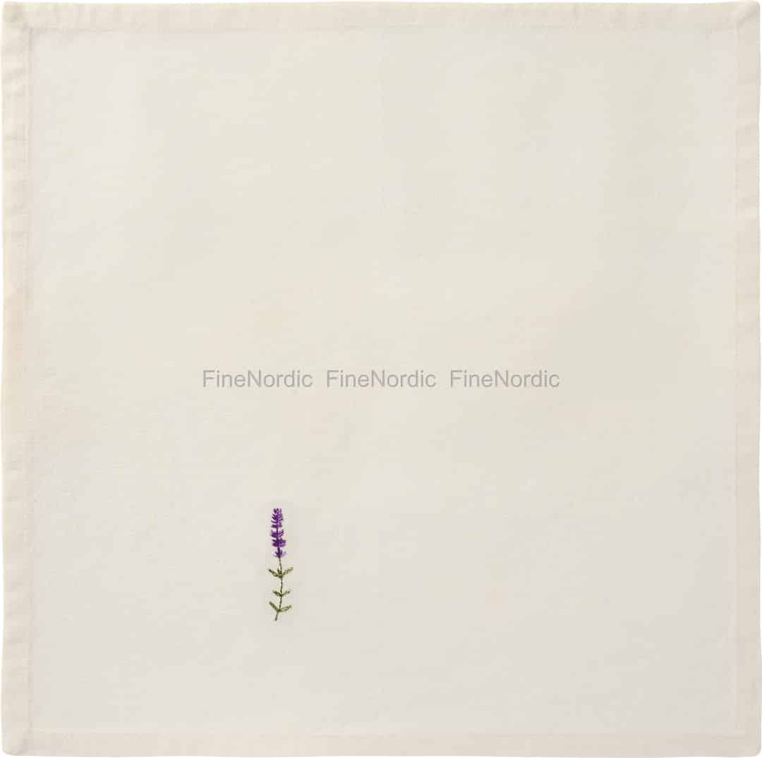 Forestil dig et bord dækket med enkle, gennemtænkte detaljer. Denne smukke, smørcremefarvede serviet fra Ib Laursen tilfører en stille charme til ethvert måltid, hvor en enkelt, fint broderet lavendelkvist lover et øjeblik af ro.