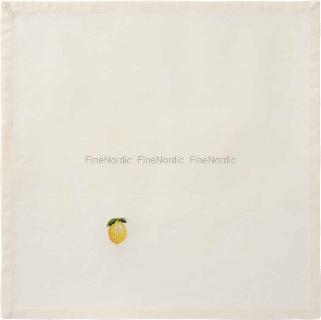 Forestil dig en solbeskinnet eftermiddag og et bord dækket til dem, du holder af. Denne charmerende stofserviet fra Ib Laursen, i en blød, citronsmørcremet nuance, indfanger netop den enkle glæde med sin ene, smukt broderede citron.