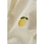 Den sande charme afsløres i de små detaljer. En enkelt, udsøgt broderet citron sidder i hjørnet – en lille hyldest til friskhed og varme. Denne gennemtænkte detalje forvandler et simpelt stykke bomuldsstof til en historiefortæller, der minder dig om hjemmelavet limonade, solrige lunde og årstidens ufortravlede glæde. Det er en invitation til at sætte farten ned og nyde øjeblikket, og til at bringe et stykke idyllisk sommerliv ind i dit hjem.
