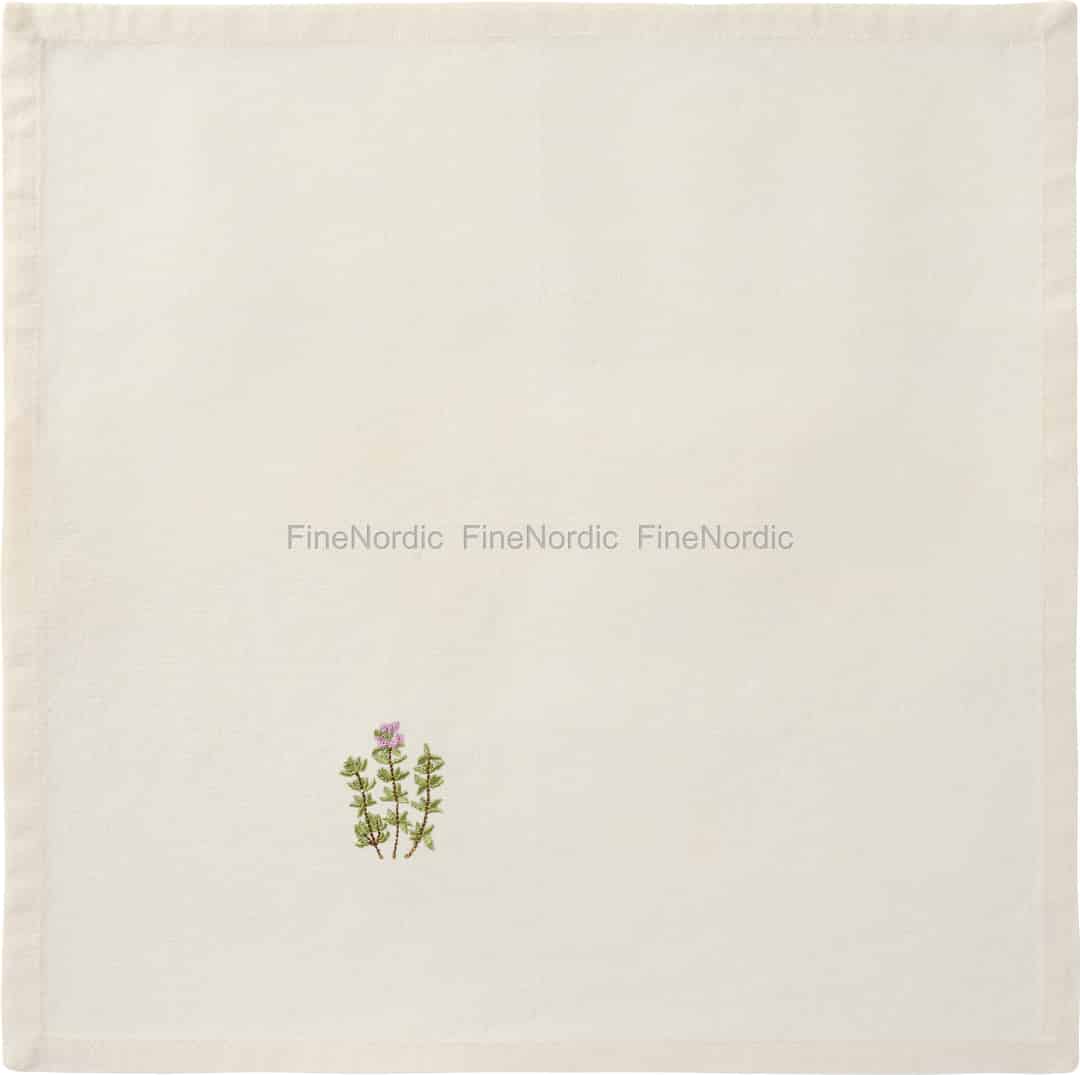 Inviter den blide charme fra en skandinavisk sommer til dit spisebord. Denne vidunderligt enkle, smørcremefarvede serviet fra Ib Laursen er prydet med en enkelt, fin kvist broderet timian – en diskret hyldest til naturens stille skønhed.