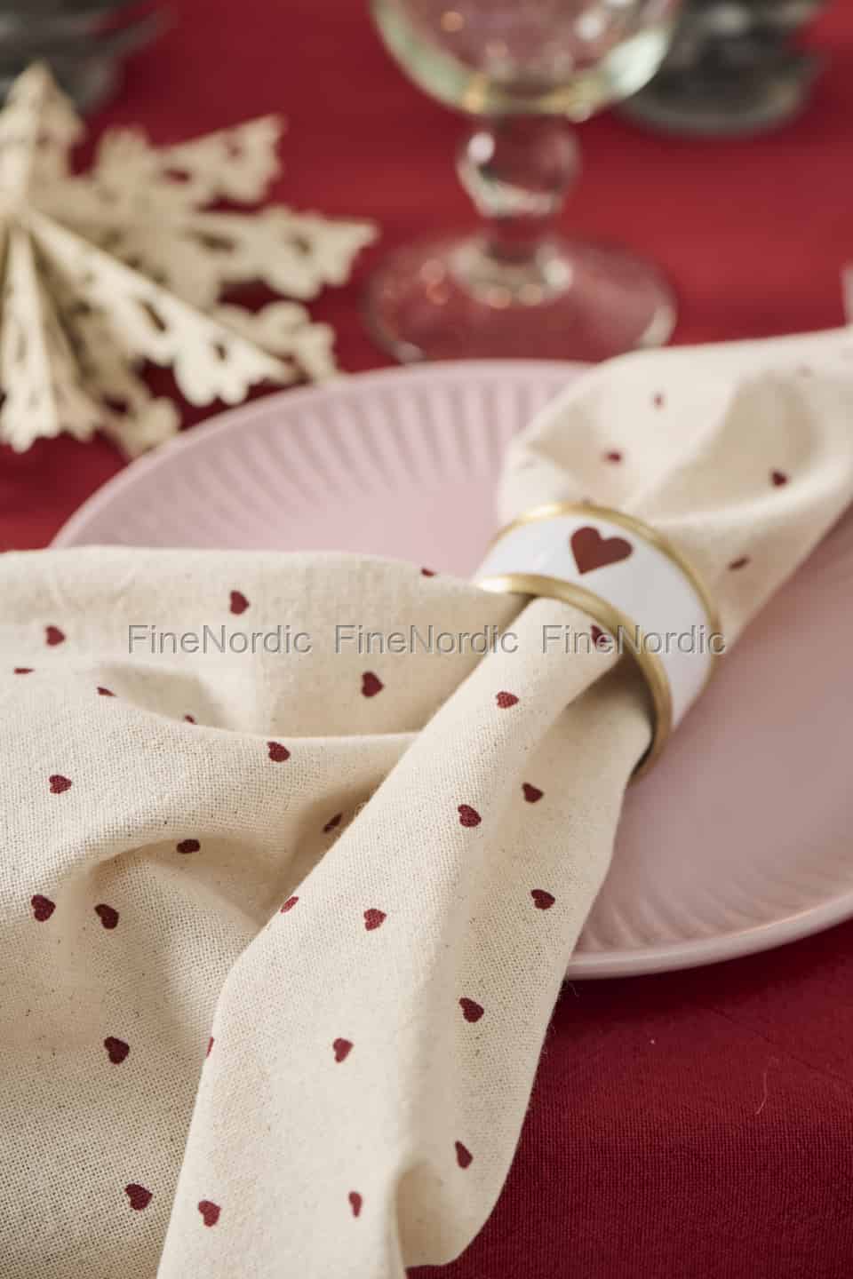 Fold lidt varme ud ved dit næste måltid med Valentin-servietten fra Ib Laursen. Den er fremstillet af blød, naturlig bomuld og prydet med søde, røde hjerter – en enkel detalje, der får enhver sammenkomst til at føles mere personlig og værdsat.