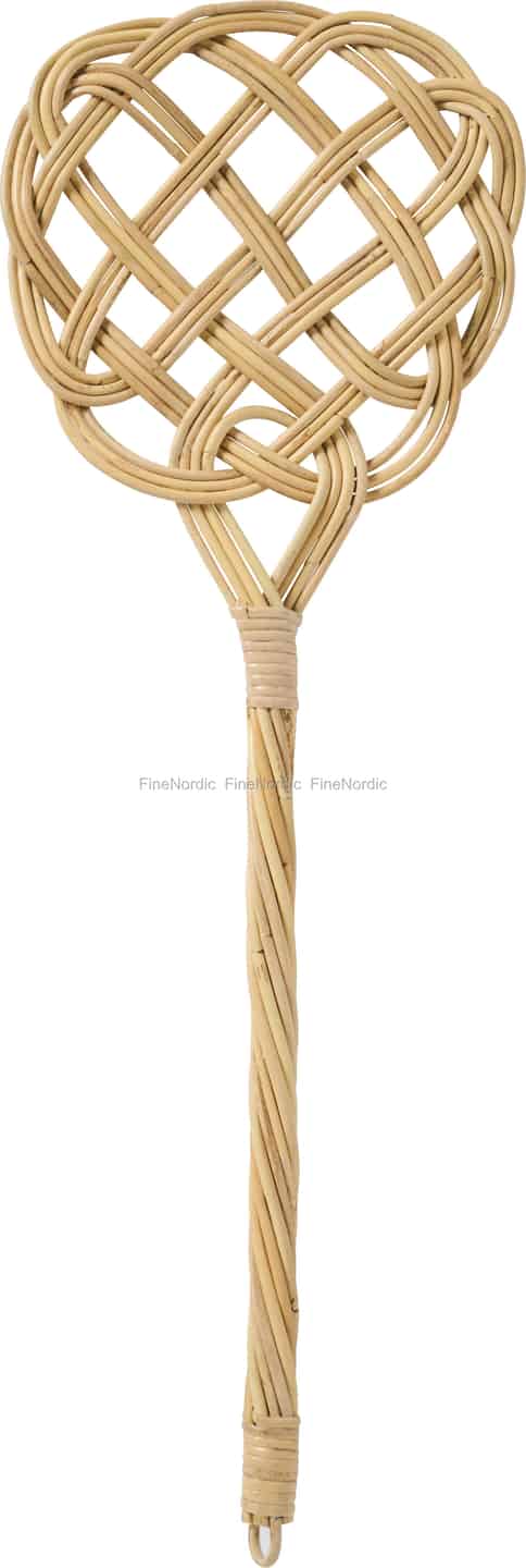 - Håndflettet naturlig rattan: Hovedet er mesterligt flettet af slidstærkt rattan og har en indviklet struktur, der giver en fast, men skånsom overflade til effektivt at fjerne støv fra dine tæpper. Samtidig tilføjer den et strejf af rustik charme til dit bryggers.