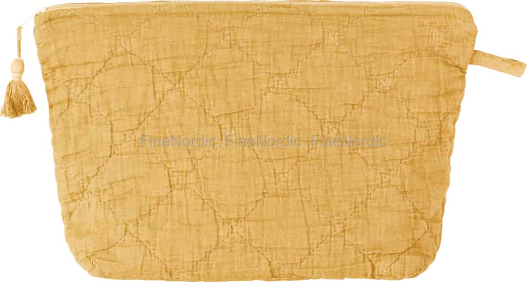 Forestil dig et strejf af morgensol, fanget i den blødeste bomuld. Denne smukt quiltede toilettaske fra Ib Laursen bringer en mild varme og enkel orden til dine uundværlige småting, uanset om du er hjemme eller på farten.