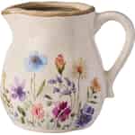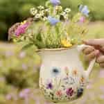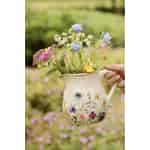 Forestil dig at træde ind fra haven med hænderne fulde af nyplukkede vilde blomster. Denne charmerende kande-vase er det perfekte hjem for dem, og dens rustikke design og blide farver afspejler den utæmmede skønhed fra en sommereng.