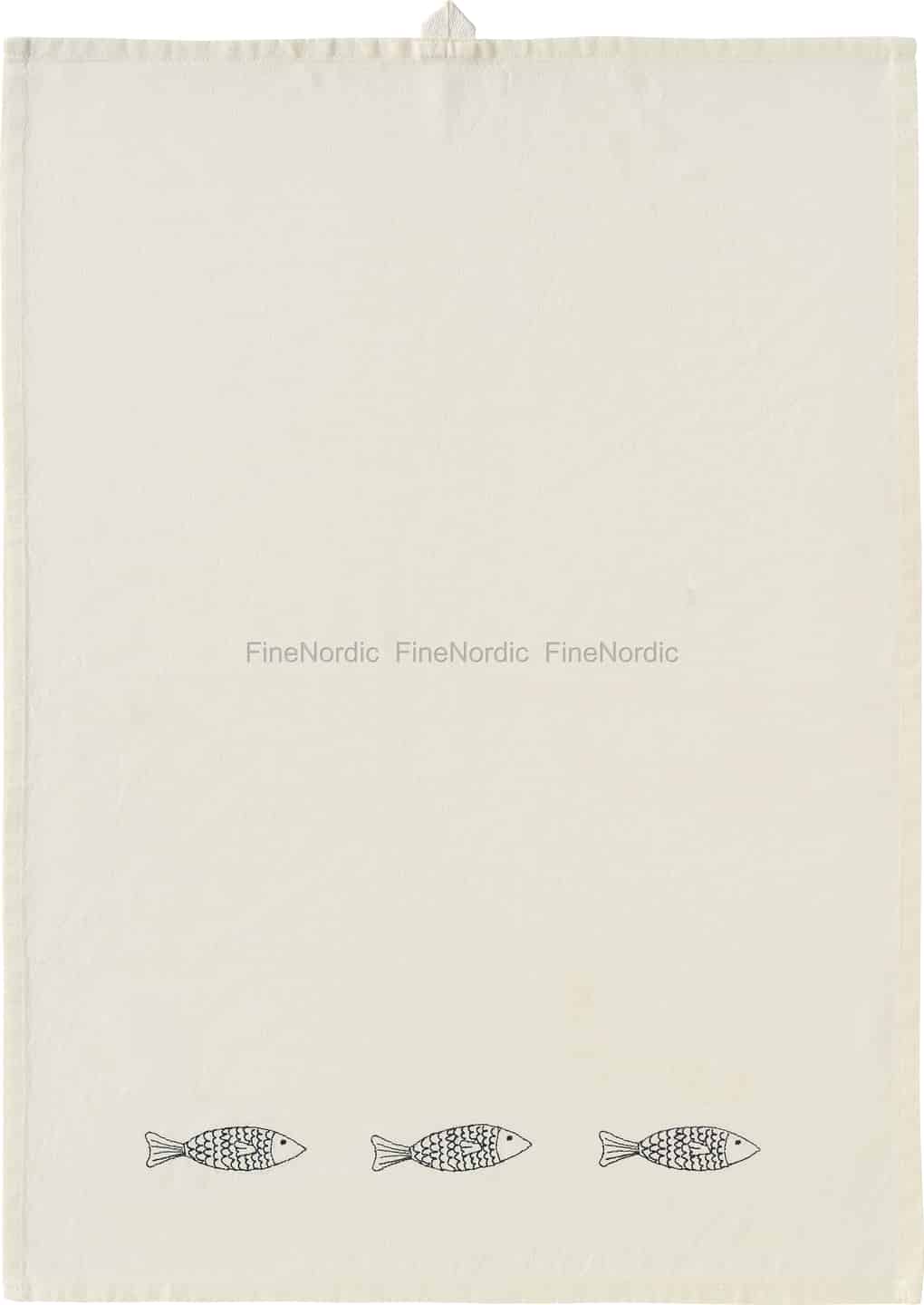 Ib Laursen Viskestykke "Atlantis" med blå fisk - Cremefarvet