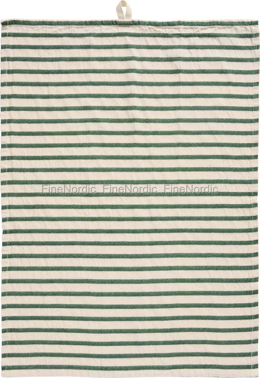 Forestil dig den enkle glæde ved et smukt og funktionelt køkkenredskab. Eske-viskestykket fra Ib Laursen, med sin bløde, vævede bomuld og klassiske mørkegrønne striber, tilfører et strejf af naturlig, underspillet elegance til dine daglige rutiner.
