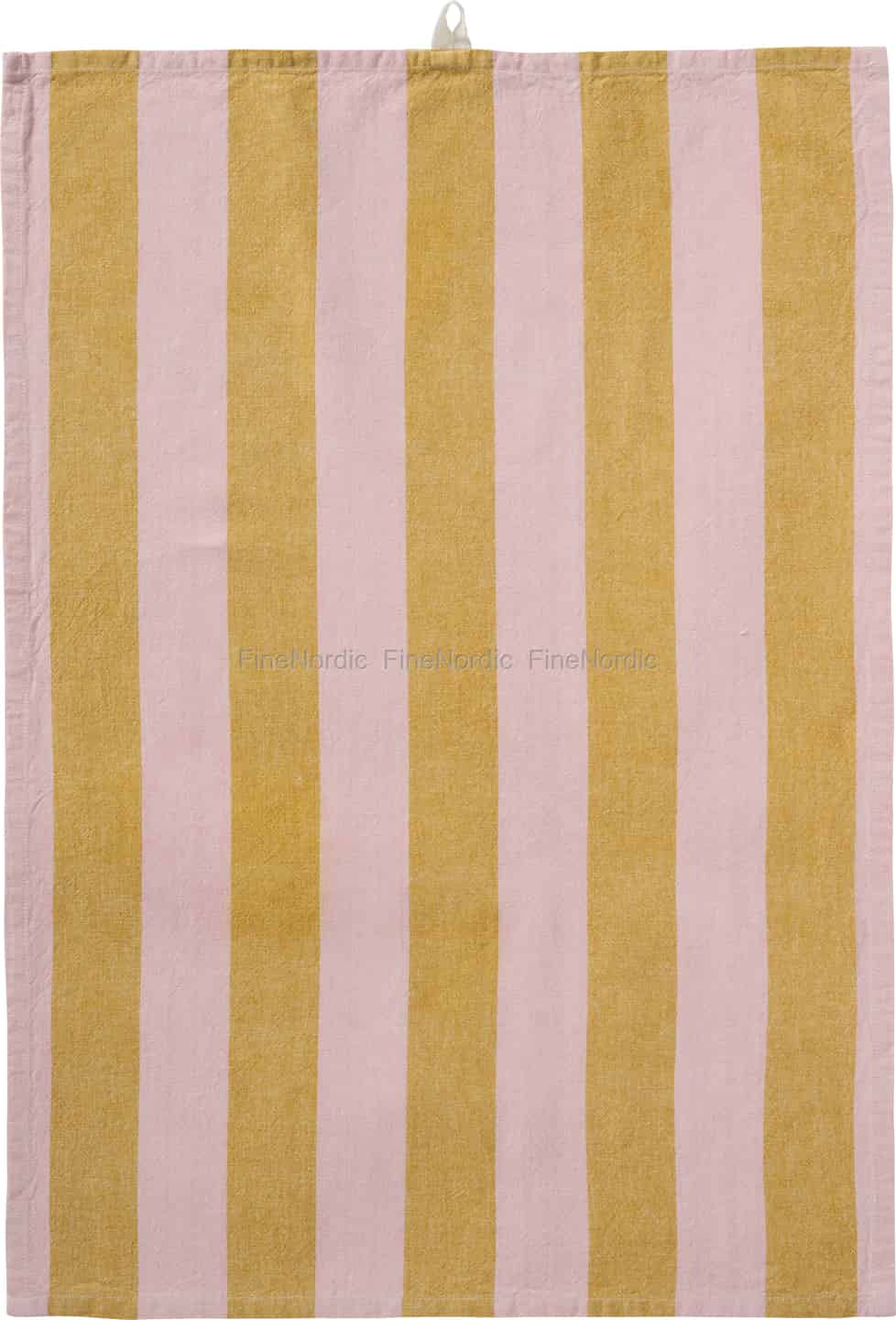 Oplev den enkle charme ved Linus-viskestykket fra Ib Laursen – et stykke tekstil, der på smukkeste vis indfanger essensen af skandinavisk design. Dets glade mønster med brede striber i sennepsfarvet og lyserød er skabt til at bringe en lille lomme af solskin ind i dit hjem og lyse op i de daglige rutiner. Den vidunderligt taktile kvalitet af den rene bomuld inviterer til at bruge det til alt, lige fra at tørre dine yndlingskrus til at beklæde en brødkurv til weekendens brunch.