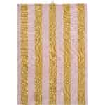 Forestil dig, hvordan det bløde morgenlys fanger de glade striber på dette smukke viskestykke. De varme sennepsfarvede og blide lyserøde nuancer bringer en følelse af enkel glæde ind i dit køkken og forvandler selv de mindste opgaver til hyggelige stunder.