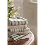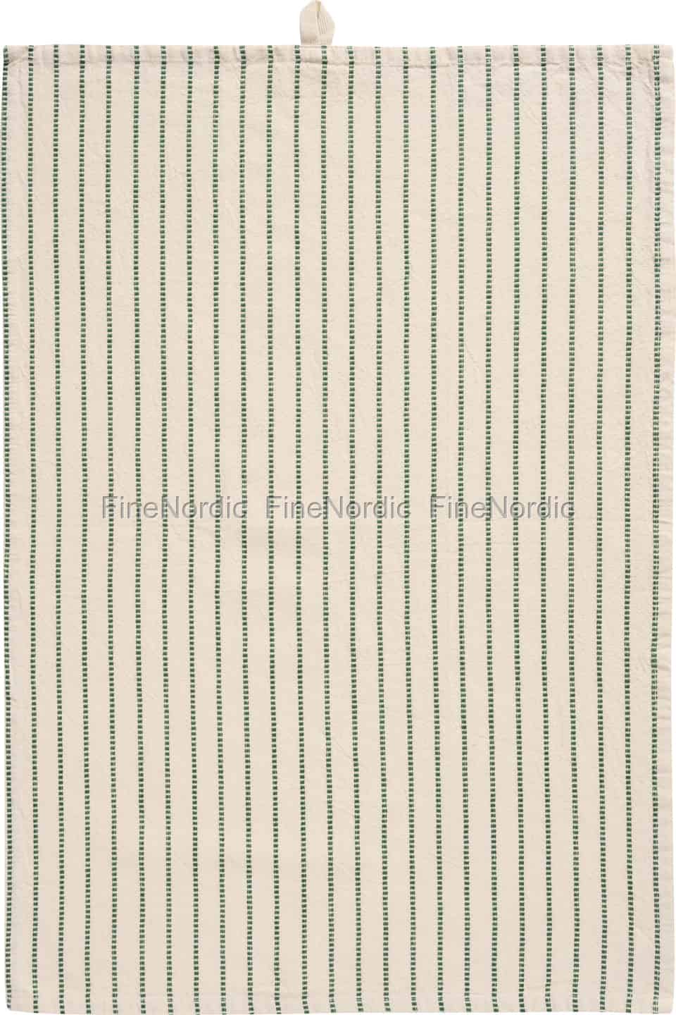 Orla viskestykket indfanger essensen af den skandinaviske livsstil, hvor funktionalitet og skønhed væves sammen. Skabt af Ib Laursen, udstråler det en kærlighed til rustik enkelthed og holdbar kvalitet. Mærk den behagelige tekstur af den rene bomuld i dine hænder – et tekstil, der bliver blødere for hver vask og med tiden bliver en endnu mere skattet del af dit hjem. Designet, med dybe grønne striber på en varm, naturlig bund, er en diskret hilsen til traditionelle nordiske mønstre og bringer en autentisk og beroligende tilstedeværelse til dit køkken.