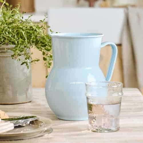 Vi har kander i mange afskygninger, specielt er vi helt pjattede med kander fra GreenGate, som leger med form og farver. Men vi har heller ikke kunnet stå for nogle glaskander og glasflasker som vi også har taget hjem. Det ser altså bare bedre ud at servere i en kande fremfor at sætte juicekartonen direkte på bordet! Og hvad med at servere mælken fra en glasflaske næste gang? En flaske er også god til at opbevare koldt vand i køleskabet.