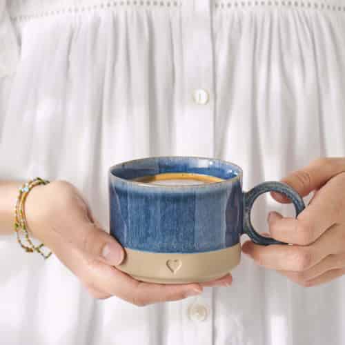 Ib Laursen Krus med hank - Hjerte - Mat brun ler med blå kant