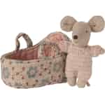 Shhh, det mindste medlem af Maileg-familien sover. Puttes trygt i en blød lift er denne lille babymus klar til stille eventyr og hviskede hemmeligheder, og den bringer en verden af blid historiefortælling ind i dit hjem.