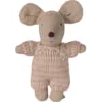 Enhver stor historie har en lille begyndelse, og med denne søde babymus folder en hel verden af fantasi sig ud. Klædt i en vidunderligt blød, lyserød- og beigestribet strikdragt er denne lille ven klar til at blive passet på. Fra de fint broderede øjne til de store ører er hver detalje skabt med den kærlighed og opmærksomhed, der gør Mailegs legetøj så specielt. Det er en karakter, der venter på et navn, en rolle og en plads i dit barns hjerte.