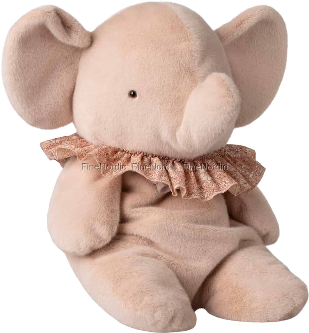 Mød din nye bedste ven, en blid kæmpe fra Mailegs fortryllende verden. Med vidunderligt store, bløde ører og de venligste øjne er denne pudderfarvede elefant indbegrebet af rolig charme. Den utroligt bløde plys indbyder til uendelige kram, mens dens vægtfyldte krop lader den sidde tålmodigt og vente på, at historier bliver fortalt og hemmeligheder bliver delt. Den smukke, vintage-inspirerede blomsterkrave om halsen er et vidnesbyrd om de gennemtænkte detaljer, der gør Maileg-legetøj så specielt.