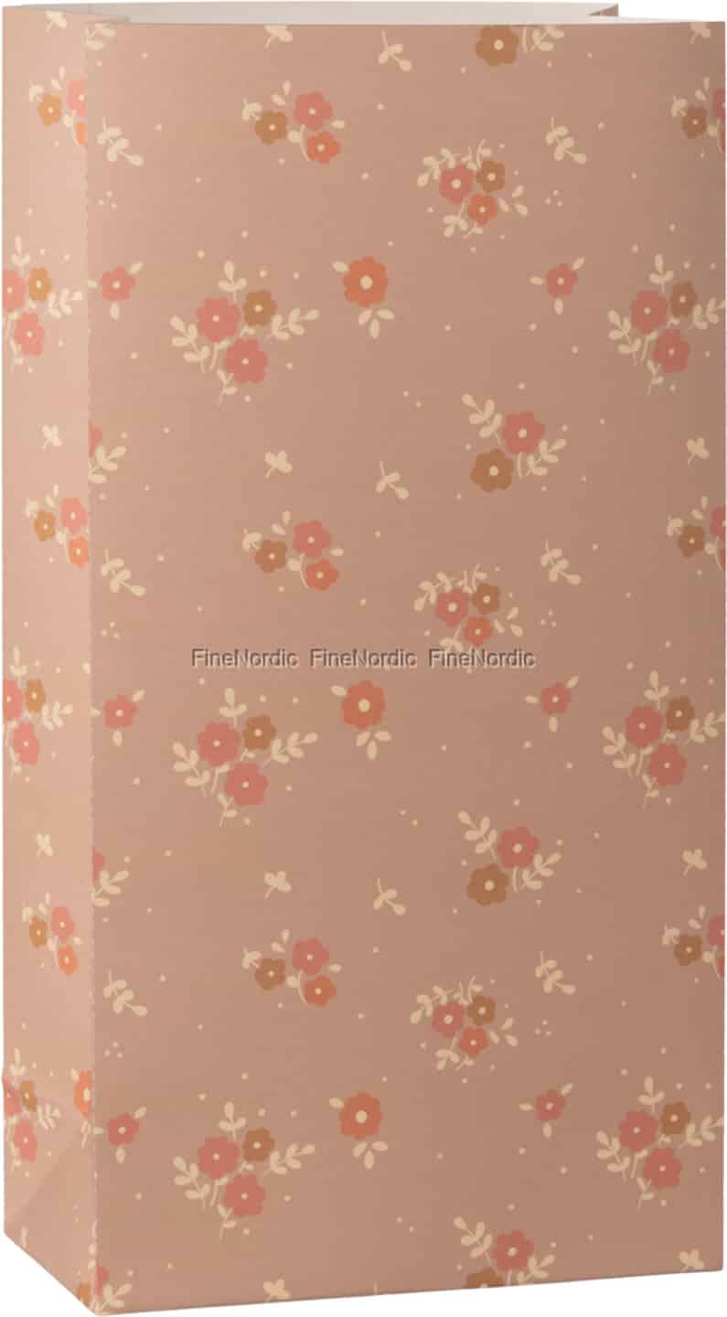 Forestil dig at give en gave, der fortæller en historie, allerede inden den er åbnet. 'Michette'-gaveposen fra Maileg fanger denne fortryllende idé til perfektion. Overfladen er som et lærred i støvet rosa, der minder om et elsket antikt tapet, hvorpå små blomsterklynger blomstrer i bløde pink, milde brune og varme koralfarver. Spredte cremefarvede blade og fine hvide prikker tilføjer et lag af finurlige detaljer, som skaber et design, der føles både tidløst og dybt personligt.