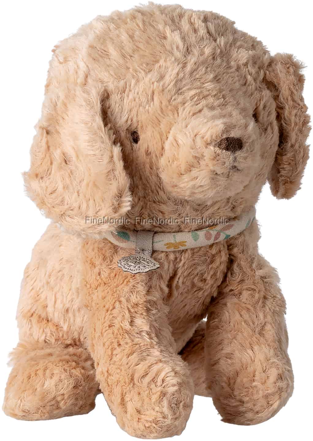 Denne søde Maileg-hundehvalp er klar til uendelige kram og eventyr og venter kun på at blive dit barns allerkæreste ven. Med sin utroligt bløde pels og det mildeste udtryk skaber den tryghed i alle de historier, I vil finde på sammen.