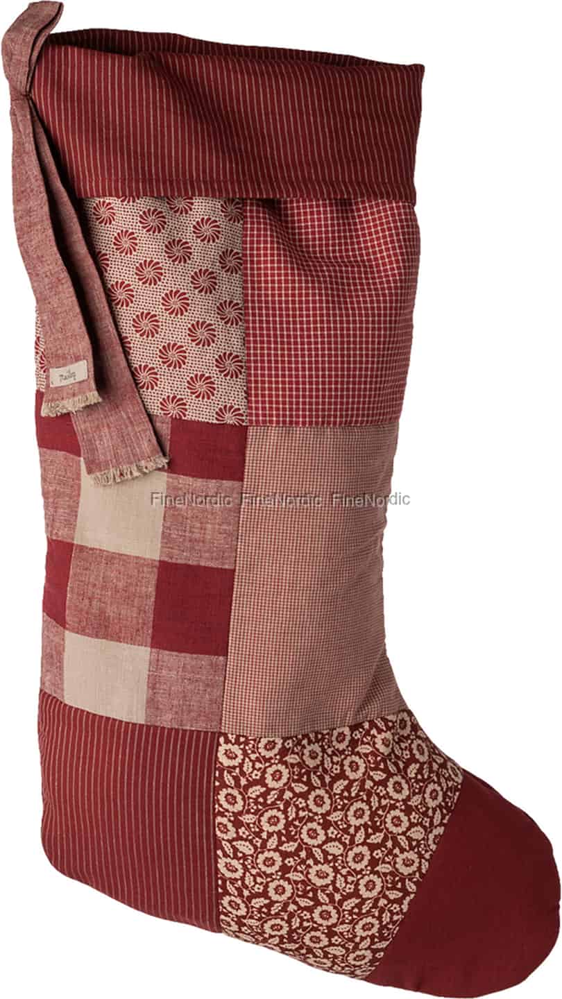 Denne smukke julesok fra Maileg er mere end blot pynt; den er et stykke julemagi, der venter på at blive fyldt. Det yndige patchwork-design samler en kollektion af klassiske mønstre i varme, julede nuancer af rød og creme. Du vil elske at lade fingerspidserne følge de forskellige teksturer – fra den sprøde, stribede kant til den bløde bomuld med blomsterprint. Det er et design, der føles både nostalgisk og tidløst, og som lover at blive en skattet del af din families årlige traditioner.