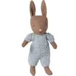 I Mailegs magiske verden har selv de mindste venner de største hjerter. Denne kære lille kanin, med sin bløde brune krop og fine broderede træk, venter på at blive en del af din families historier. Klædt i en vidunderligt blød, himmelblå strikdragt har den en tidløs charme, der føles både nostalgisk og ny. Hver detalje er designet til at vække fantasien, fra dens slaskede ører, der er perfekte til at lytte til hemmeligheder, til dens søde, syede næse. Det er mere end et stykke legetøj; det er et kommende arvestykke, klar til utallige timers leg.