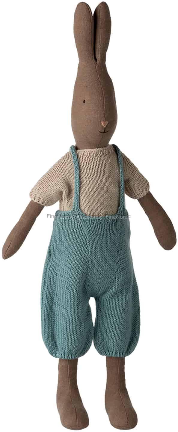 Denne charmerende Maileg-kanin er klar til en dag fyldt med blide eventyr og venter på at blive dit barns kæreste ven. Dens bløde tekstilkrop og kærligt strikkede tøj indbyder til varme kram og uendelige historier.