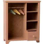 Ethvert elsket outfit fortjener en særlig plads. Forestil dig dit barn, der omhyggeligt hænger små kjoler ind i dette smukke klædeskab i træ. Det er mere end et stykke legetøj; det er en dør til en verden af fortryllende historier og fantasifuld leg.