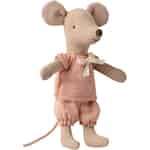 Mød Maileg lillesøster musen, en lille ven med et stort hjerte for eventyr. Om dagen er hun stjernen i utallige fortællinger, hvor hendes magnetiske hænder hjælper hende med at klatre på miniaturemøbler eller holde i hånd med sine søskende. Hendes søde, broderede ansigt og bløde krop af stof gør hende til en vidunderligt taktil ven for dit barn, som opmuntrer til timevis af kreativ leg.