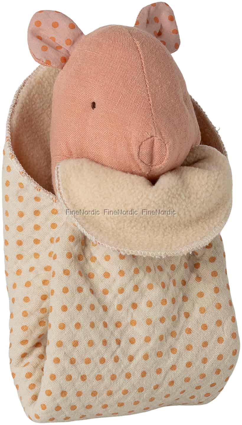 Puttes trygt i sin vatterede sovepose er denne lille gris klar til at blive dit barns kæreste ven. Med sin bløde, rosa krop og venlige udtryk inviterer den til blide kram og hviskede hemmeligheder ved sengetid.