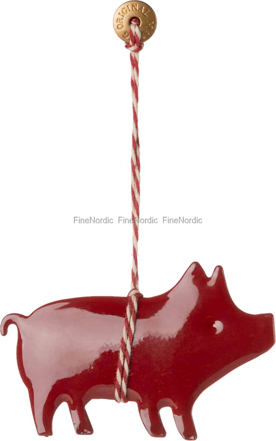 Forestil dig det bløde skær fra lyskæderne, der fanger den blanke, røde overflade på dette charmerende griseornament. Som en herlig figur fra Maileg bringer den et strejf af klassisk dansk folklore og hjertevarm hygge til din julepynt.